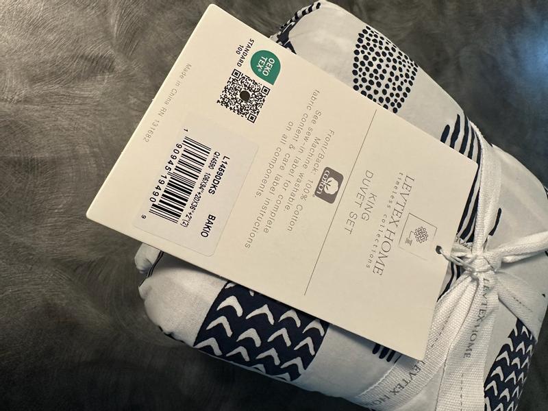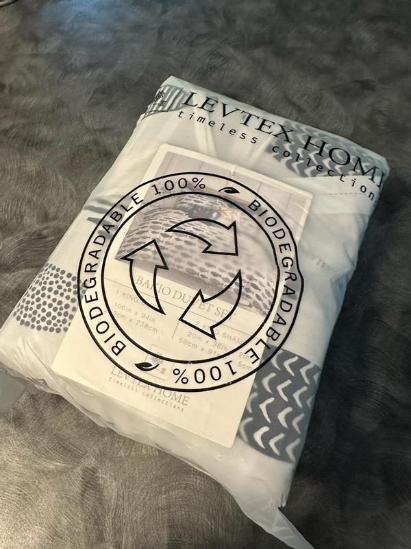 The package is eco friendly and the size fits my king size pillow and comforter. The material is 100%cotton but it’s on the stiff side. Not sure if wash will make it softer, it felt like linen texture. I like the pattern that can be used both side. The only dislike is not soft enough.