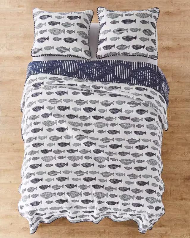 This is an excellent quality duvet set. The material is very nicely stitched and made with strong yet soft fabric. I have washed it a few times now and it hasn't run or lost its color, and it is holding up very well. I particularly like the design as it fits my nautical themed room but isn't overpowering at all. It's classic and modern at the same time. Fits my queen bed perfectly! Very nice! Highly recommended.