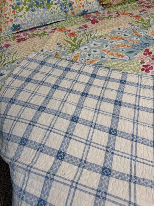 This quilt is very well made. It is thin enough to be light weight but still has some sturdiness to it. The set included the quilt which has a beautiful floral pattern on the front and a type of gingham pattern on the back. It included 2 pillow cases that match the quilt. o this set offers a great way to add some spring color to your bedroom. While still being comfortable and sturdy.