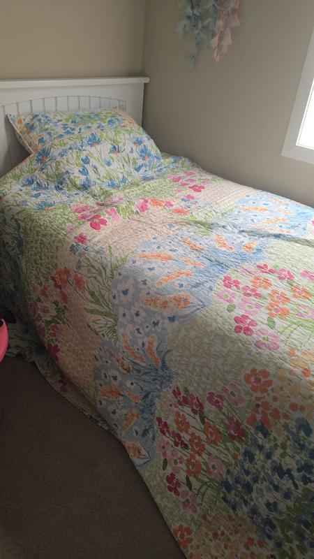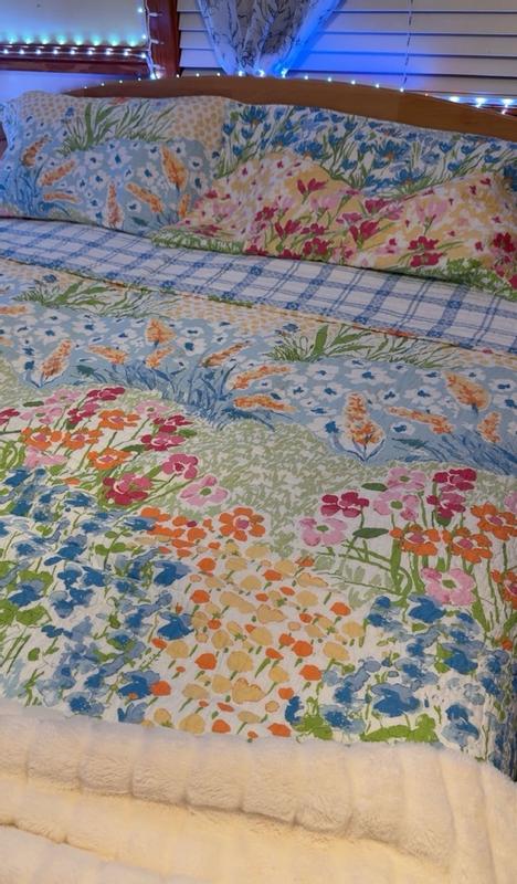Blooming hillside quilt set is amazing. The bright colors of the flowers print are making room shine and spring weather feeling enters to your bed. The material is super soft and details are unique. Sizes are true to my king size bed, I immediately knew that it’s a bedding that I would keep and do it over again as it so memorable. It’s not as warm as I thought it would be, but it’s easy fix just to add an extra blanket that can be paired with. Lightweight and it’s super compact for storage reason. Recommending to others this brand as I fell in love with bedding.
