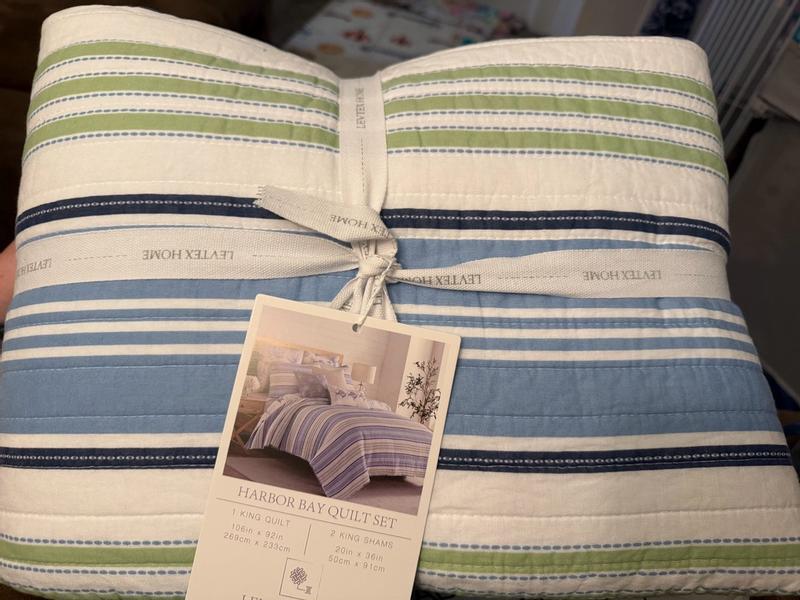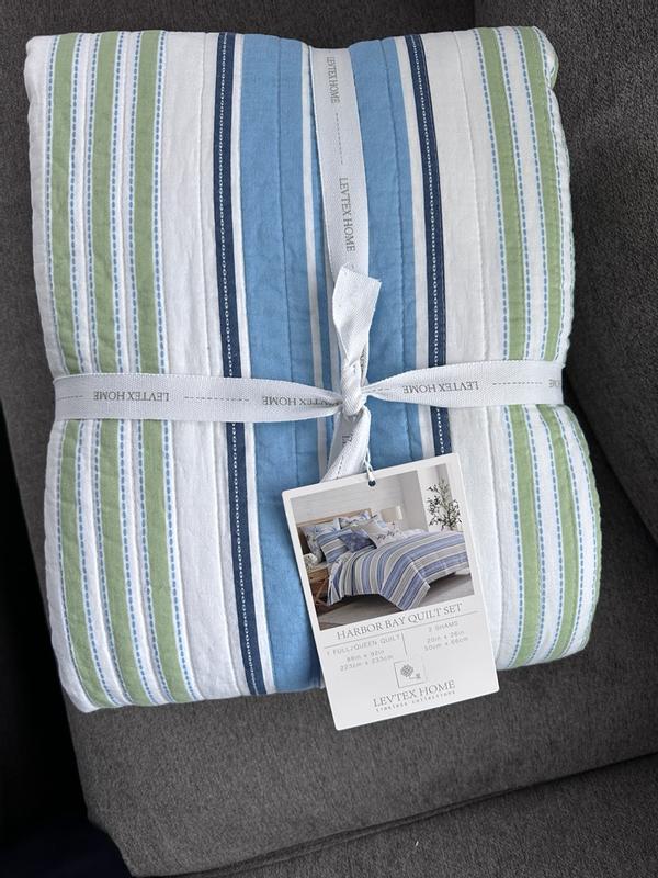Was so excited to record this Harbor Bay Quilt set recently! Loved that it came just at a time when we have a lot of family over. Our guest bed needed a refresh and the color scheme matched ours so good. We got some more matching items to go with the quilt set so our family members have been enjoying!