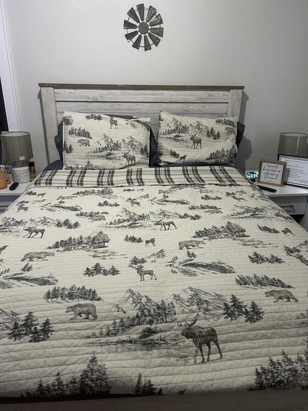 Add cozy, rustic style to your room with the Lodge Toile Comforter Set from Levtex Home. Featuring sketched wildlife scenes and a reversible plaid back. Our comforter is breathable, generously sized and is made with soft and luxurious cotton, providing ultimate comfort with a richly soft feel.