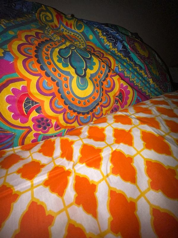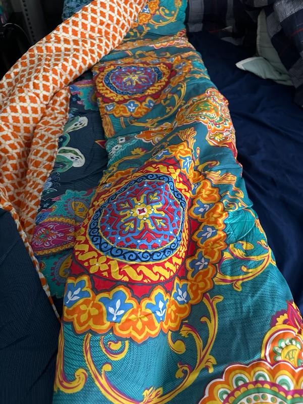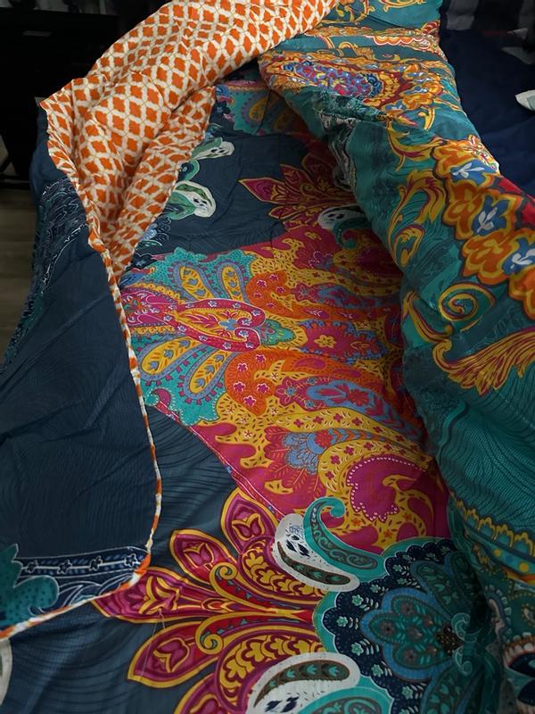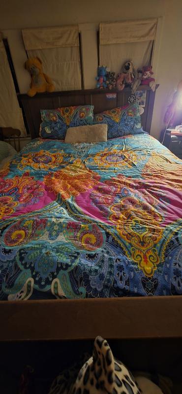 I love this comforter set! The colors are so vibrant and cute they fit perfectly in my room. The fit of the comforter itself on my queens sized bed is spot on and it’s super comfortable and warm. You can tell it’s really good quality. Overall for the price and durability I’d say this was a steal. So glad I was able to snag this!!