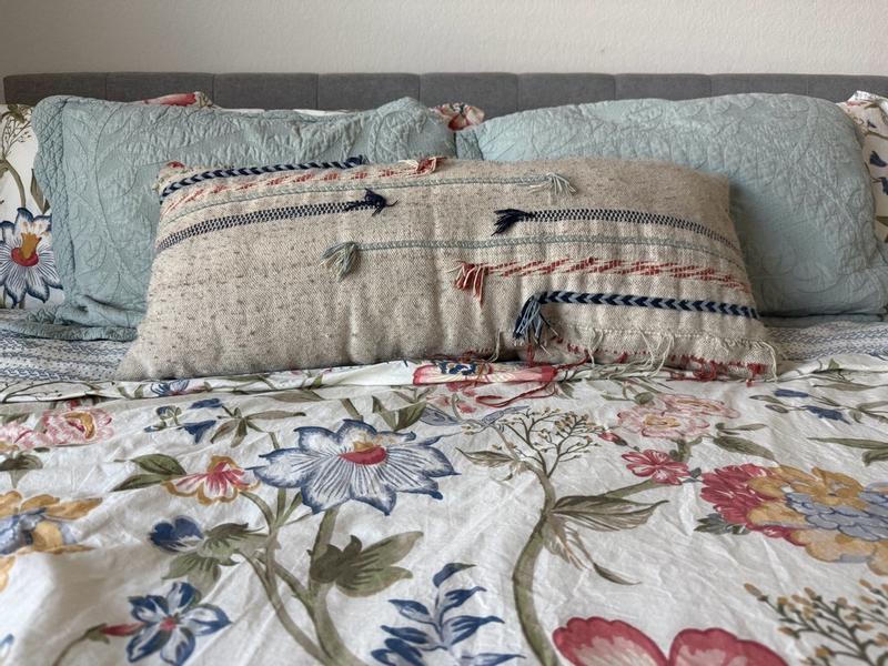 The duvet cover set is one of those pieces that instantly makes your bed look styled. The floral-and-paisley print reads soft, cheerful, and a little cottage feeling, but it doesn’t veer into grandma territory. The cotton feels breathable and comfortable rather than slick or stiff, and it has that broken-in softness you want when you’re crawling into bed at the end of a long day. The pattern does a great job of hiding wrinkles, which is a win if you’re not ironing bedding like it’s a full-time job. It works especially well in light, neutral bedrooms where you want color without chaos, and it layers beautifully with solid pillows or a chunky throw. Overall, it feels cozy, feminine without being overboard.