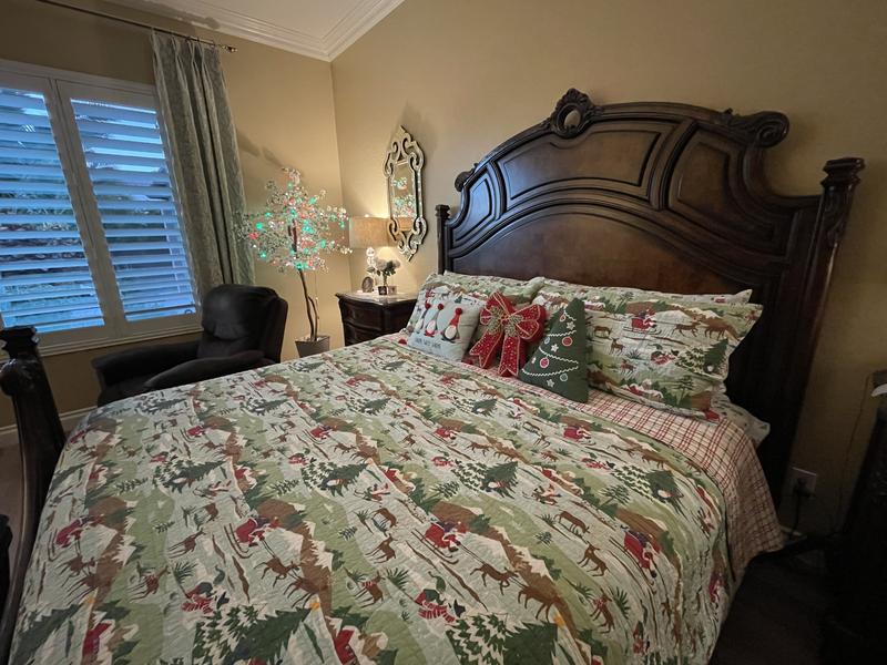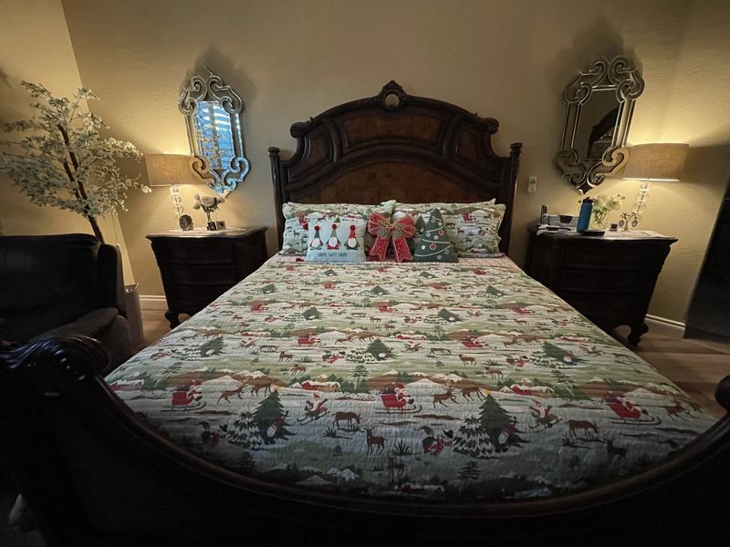 I absolutely love this Levtex Home *Merry Mountains Quilt Set*! The design is festive and charming, featuring Santa in his sleigh with reindeer, snowy trees, and cheerful holiday details that instantly bring Christmas spirit into the room. The quality is excellent—soft, well-made, and beautifully quilted. It has a cozy weight that adds the perfect amount of warmth for the holiday season without being too heavy. This set truly transforms the bedroom with its holiday charm and makes everything feel more welcoming and festive. Highly recommend for anyone looking to add both style and comfort to their holiday décor!