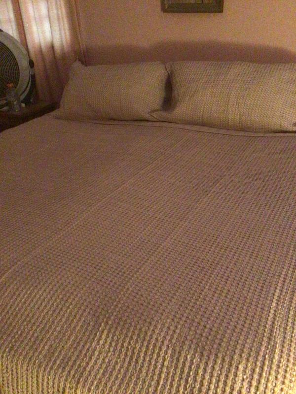 Truly impressed by the quality of this comforter set! It was exactly what we were looking for which matched 100% how it was described online. The material is amazing, soft and cozy without being too heavy, and the color has that nice slightly faded look. Highly recommend this set!
