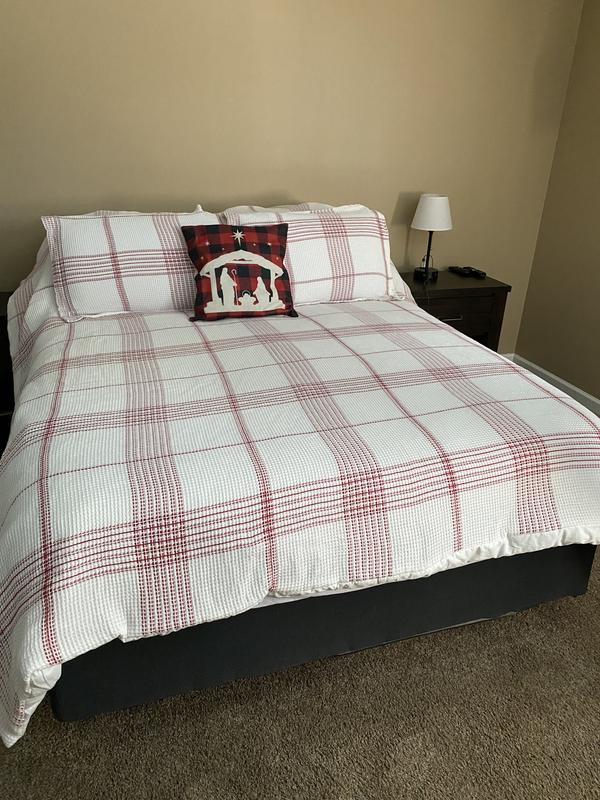 Levtex Home - Peppermint Plaid King Duvet Cover Set was beautiful had perfect red and white stripes came in a nice storage bag that matches it is so soft and warm and really makes it feel like christmas I think it's stunning and very high quality feels amazing and durable definitely a cute addition to any bedroom has the pillow cases as well.