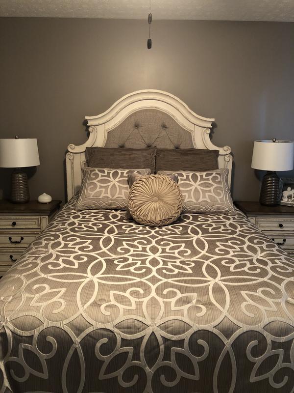 I love this set so much that when I upgraded my bed from Queen to King I bought the set again! It washes well too. It is on the thinner side, which I wanted. I am waiting on my new King size tan quilt which I will fold across the foot. This set is beautifully neutral although there is a pattern of peacocks on it. My only reservation is that I wish it was wider, but I have learned that 104 inches wide is standard for King size.