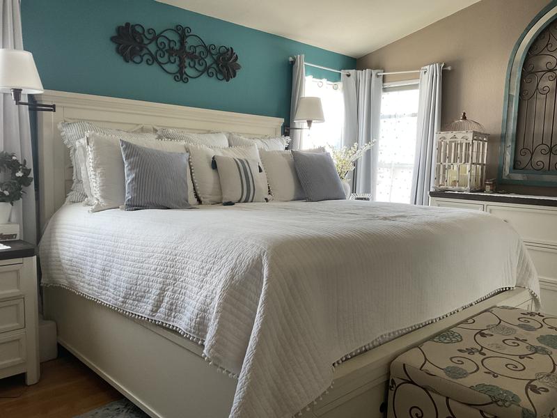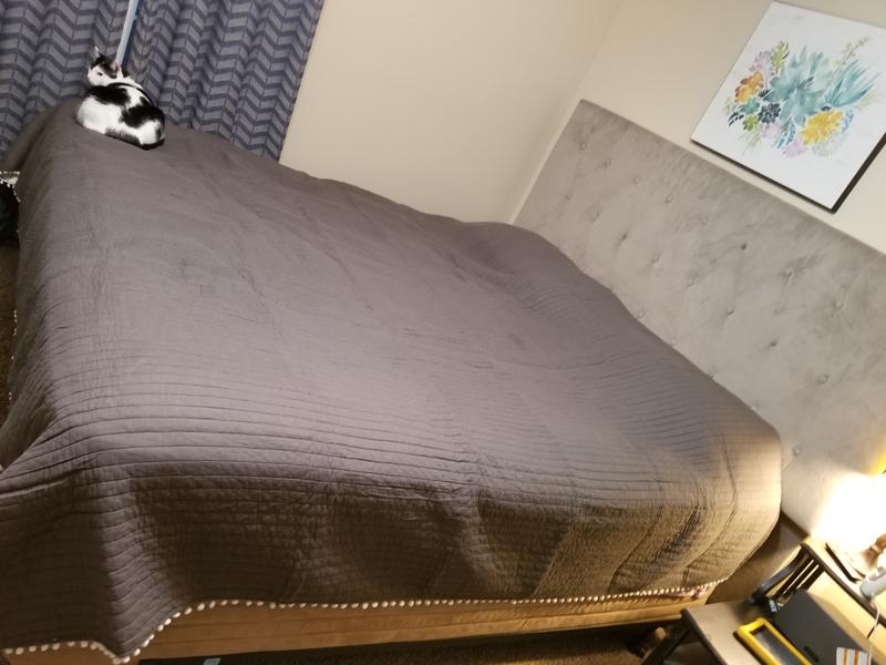 I love this quilt! Looked all over online to find one with the perfect color sand. Not too warm, not too cool. I have to admit I wasn’t a big fan of the pom-poms, but since it was perfect in every other way, I went ahead and ordered it. The braid they were attached was very easy to remove. It transformed my bedroom. I recommend quilts made by Levtex!