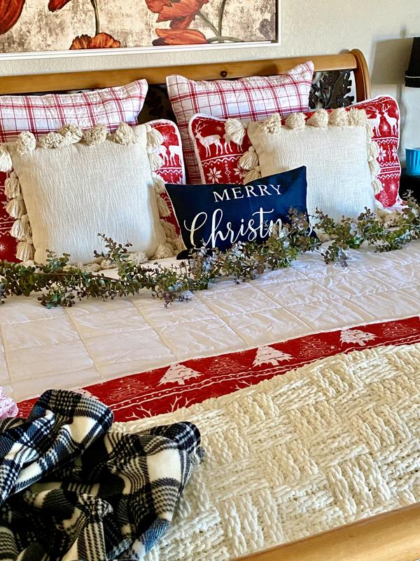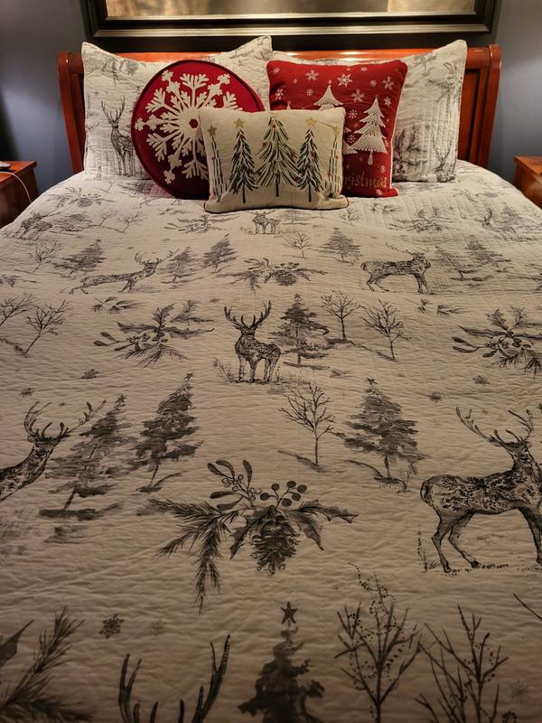 The holiday pillow shams looked really cute with the deer in the middle on the online app. Unfortunately my two pillow shams had half a deer on the left and the other had a head peeking from the bottom. Nothing was centered. Too bad. I had to return them.