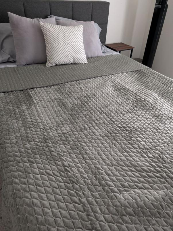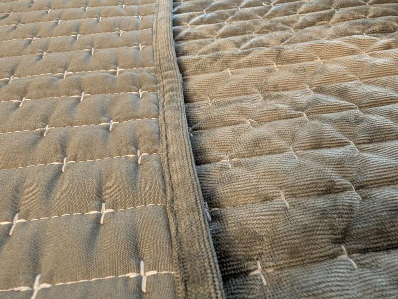 Quilt felt soft and comfortable. Quality seems thick and durable. One side is a short ribbed velvet, the other a lightweight fabric. Has a cute decorative stitching. Star off because the price seems steep for 100% polyester. The shams also feel lower quality than the quilt.