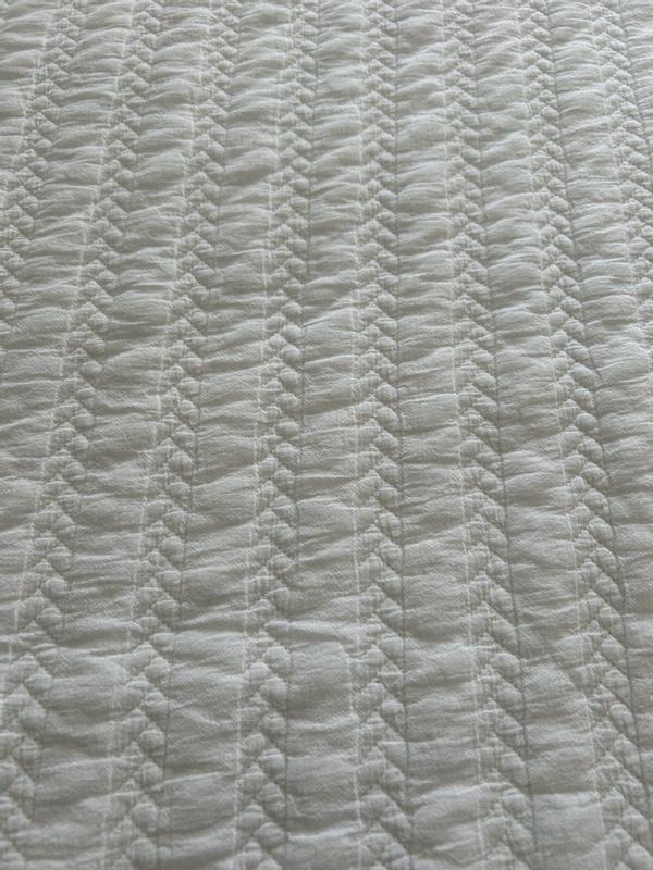 I’m really happy with this quilt set. The creamy color is perfect – it’s light and fresh but not too stark or bright. The weight is nice too, light enough for warmer weather but still cozy. I love that it has this elegant yet beachy vibe that works really well in my bedroom. It gives the room a relaxed, coastal feel without being too themed or over the top. The quality seems solid, and it looks more expensive than it is. It is a good size as well.
