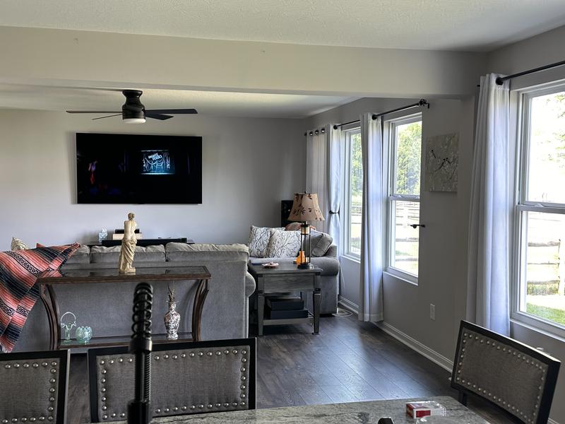 TV looks amazing. It's super bright and clear in my living room that receives light from a large side window. My only complaint is the back panel of my tv had a few dents right out the box.