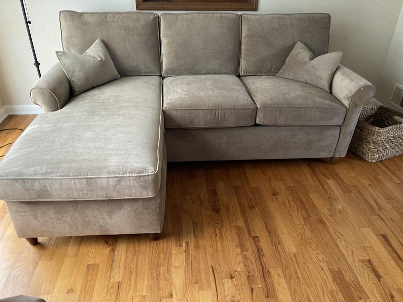 If you’re looking for a smallish sofa this is a nice option. I love the chaise feature without the bulk of a larger sectional. Well made and attractive, yet firmer than I’m accustomed to and sits a bit higher than I’d like. Three weeks in and I’m mourning the pillowy comfort of my 20+ year old sofa. I do hope with a bit of wear it will soften up. I opted for the Taupe color and it’s perfect, looks so much better in person. Delivery was a breeze and received 8 weeks after placing order.
