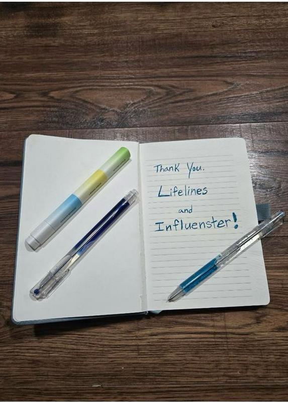 One of the best products I have ever received from influenster. Journal feels very luxurious and has an embedded design on the edge of the pages. Both are pens are smooth and have different inks. Highlighter smells amazing. It is truly amazing and calms your mind. One of the thoughtful product to gift someone who loves writing journals. Thank you influenster for sending me this