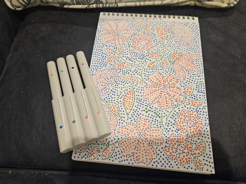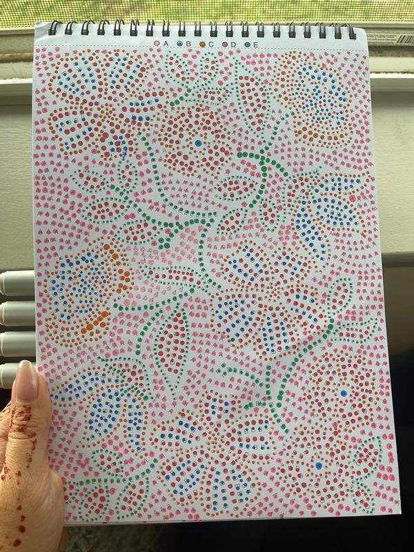 This is such a fun craft! It is so zenith to just dot away while listening to music or out on the patio on a nice day. Each page let's you choose what colors to use and its so much fun watching it come alive. The markers also clip right into the notepad which makes it so easy to throw in a bag and take on the go. High quality markers and paper- seriously a great product!