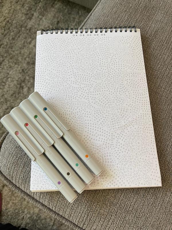 I have loved completing the dot by letters so far! It is not overwhelming like some coloring sheets or paint by numbers, you can easily finish a sheet in one day. The markers conveniently attach to the notebook for easy transport and keeps you from losing them.