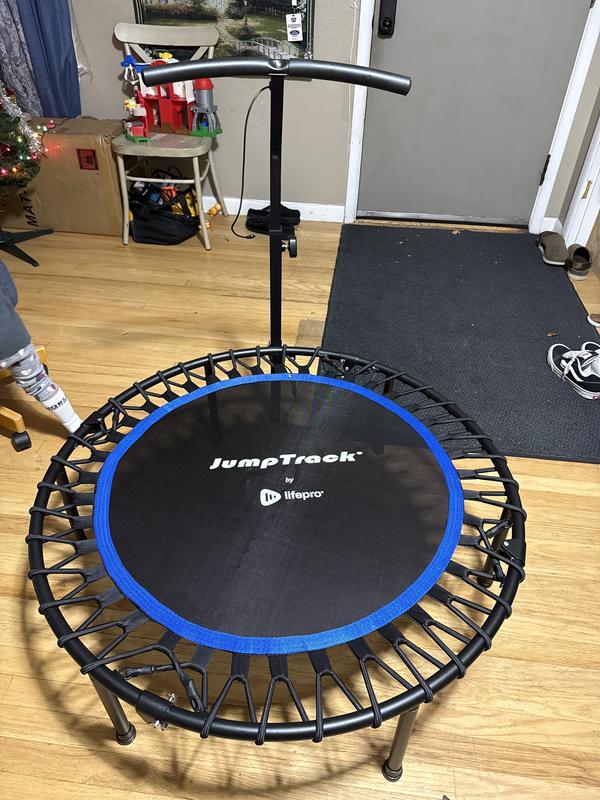 I did 5-minutes on the rebounder and realized how out of shape I was! I started to do another 5-minutes. Although I had tightened the support handle as much as I could, it loosened. I fell straight backwards. Of all places to land, I hit my lower back against the top edge of my vibration plate. The place I hit my back was the exact place where I had spine surgery. Although sore, I am okay. I love the rebounder, but not the support post! Anyone who purchases needs to be extra cautious about the bar.