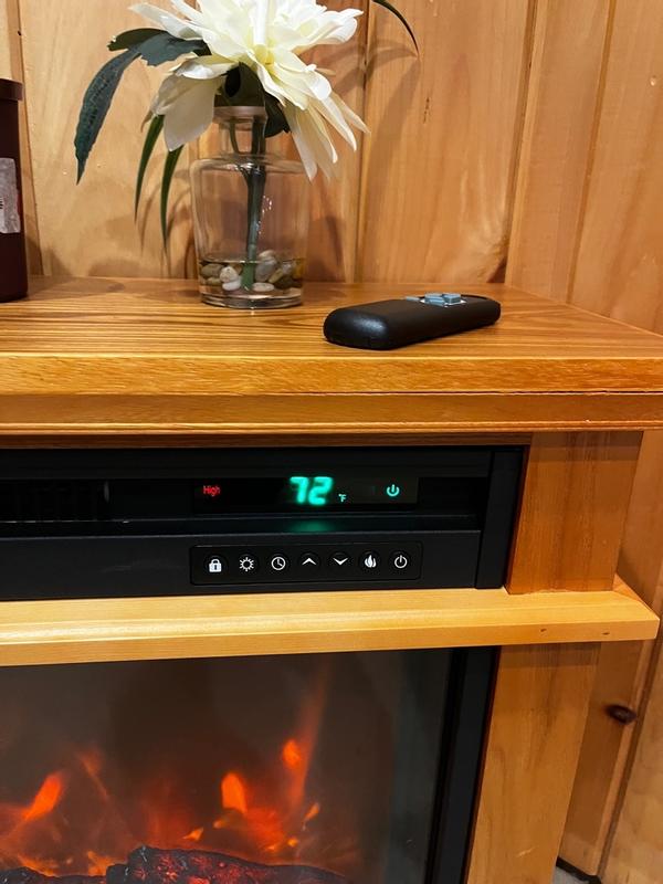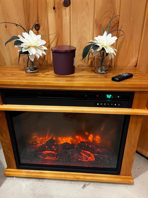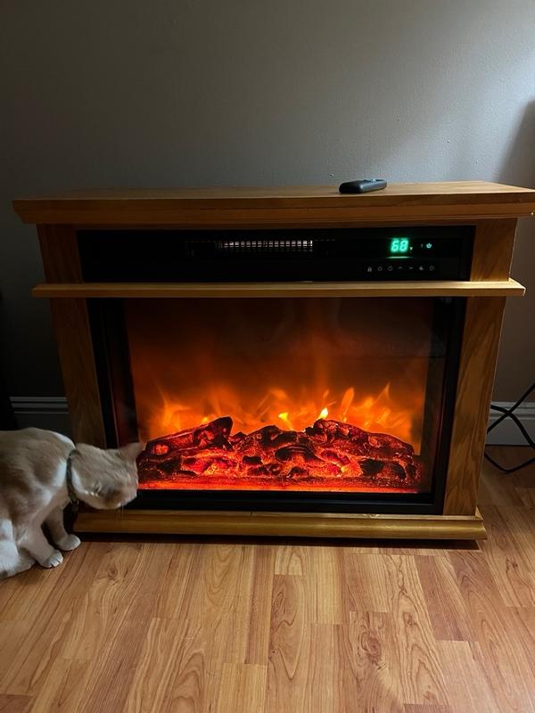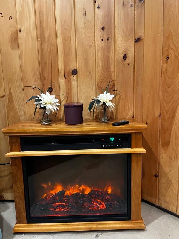 I loved that there was no set up involved with this fireplace, I just took it out of the box and plugged it in. It warms up fast and I love that it has wheels so it can easily move to a different room. Only con is that the wood finish looks a little dated.