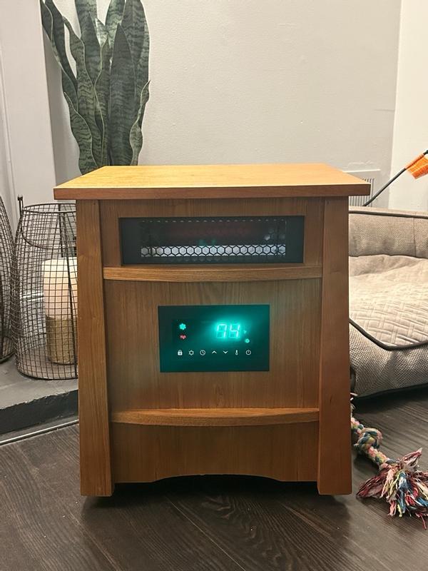 My dogs love this heater and cannot stay away from it. I love that it has wheels and has a fancy look to it. So easy to use with the remote and heats very well.