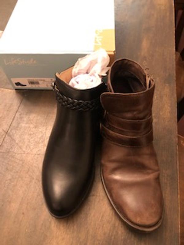 I just receive Life Stride Adriana Bootie BLK 7 M. Liked the bootie - great style. I was disappoint that the shoe had been worn. scuff bottom Soles. I am returning.