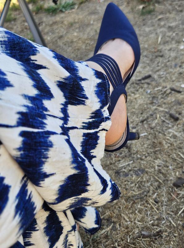 Very comfortable all day wear type heels color is beautiful deep blue.