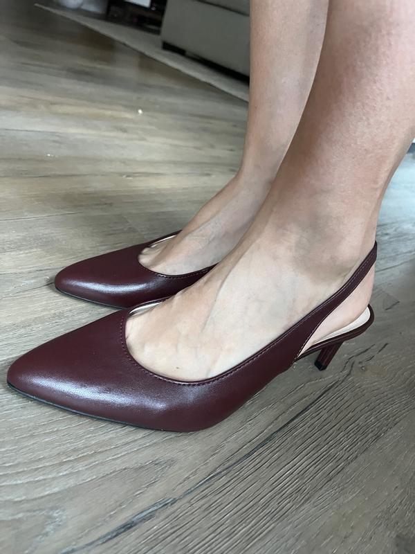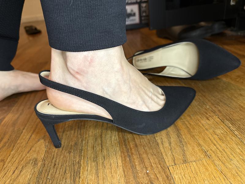 Just got these heels day before church. I tried them on with just a footie and they seemed good to go. So I got ready for church put the shoes and as I was walking the the house the strap keep slipping down and almost caused me to fall. I loved the slingback but I’d have to wear them without hoses and that’s just not me. Them fit good in the toe and I just don’t know why the slipped off. Maybe it need a wider strap. Very disappointed but I’m going to return them.