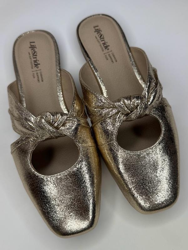 The Believe Slip On Mule by Lifestride is one of those shoes you just throw on and instantly look put together! The platino gold faux leather is subtle but still cute, and the knotted detail makes them feel a little elevated without trying too hard! They’re super easy to slip on, comfy right away (no break-in required!) thanks to the Soft System cushioning, and the slight heel gives just enough lift for everyday wear. Perfect for work, running errands, or dressing up jeans when you don’t want sneakers but also don’t want heels! Easy, comfy, and sooooo versatile!