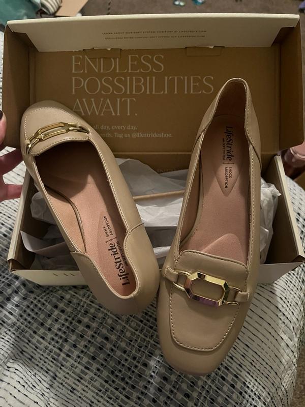 Bought these in silver. Have to try these on again with different footwear. Not sure if the buckle flap is going to rub against my foot. Life Stride size 7 is my usual size in this brand.