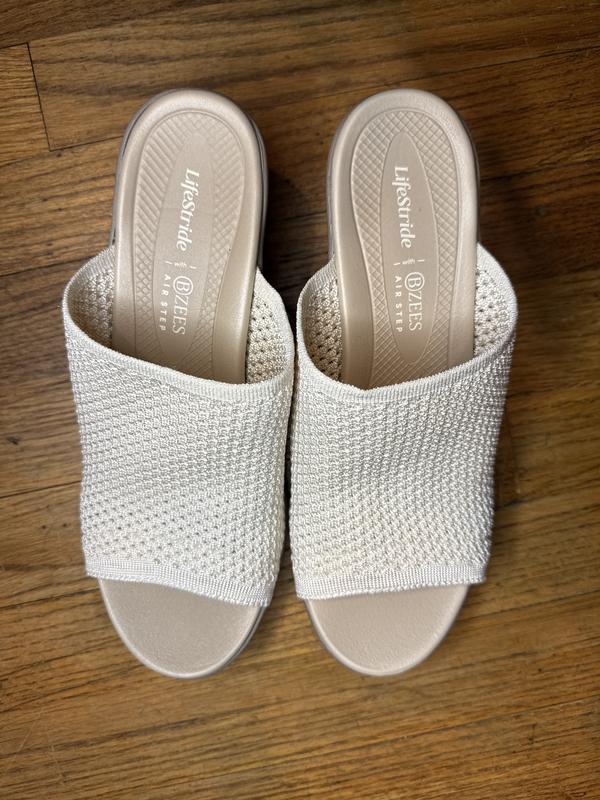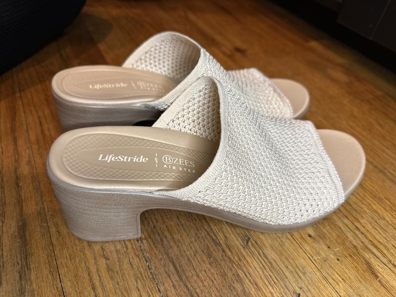 An extremely comfortable shoe with a rubber sole which absorbs shock and pressure and an elasticized knit top which conforms to the shape of your foot plus it is washable! I ordered my usual sandal size in 7.5 but everyone's foot as every shoe can be a little different and in this particular shoe I wanted a little more room across my toes because of a developing bunion so I exchanged the 7.5 for a size 8. Looking forward to getting it.