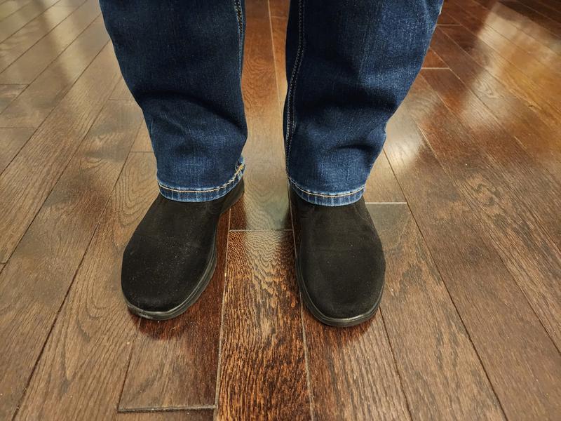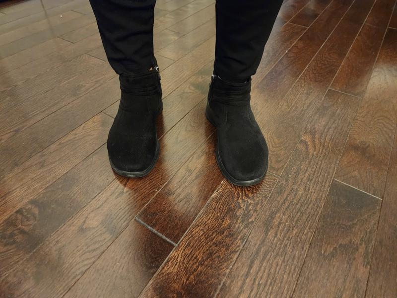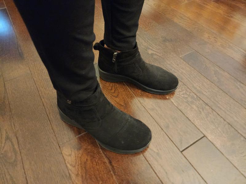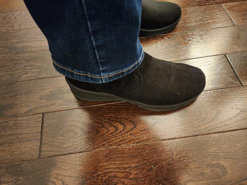 I love BZees. These booties slip on and the comfort begins. They are very warm and support you arches all day.