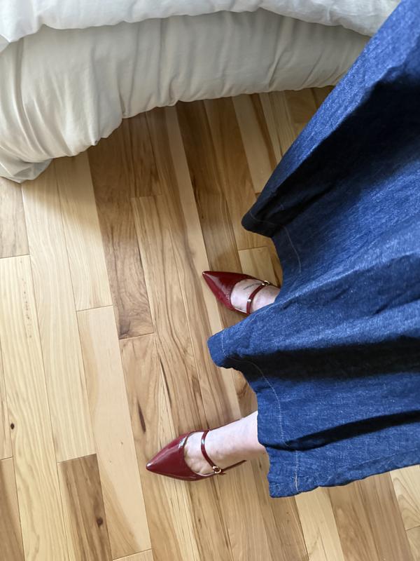 I was looking for a "cranberry" colored kind of dressy shoe ( but not too dressy!) and found it in this pair. They are super comfortable and fit to size (I wear an 9, and bought these in a 9). The design is so cute and the heel height is perfect.... looks dressy, but I'm not going to fall down wearing these. The Dark Cherry patent leather is beautiful, and not stiff (which is what I was afraid of). Would not hesitate to buy these!