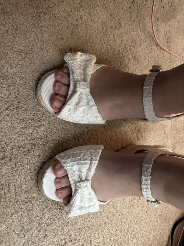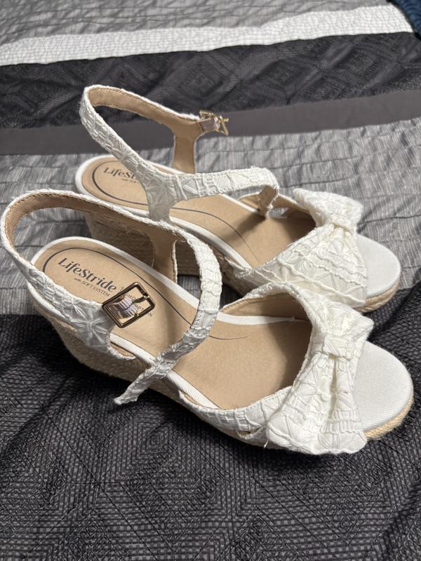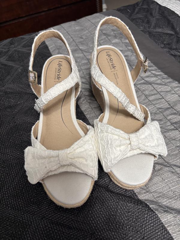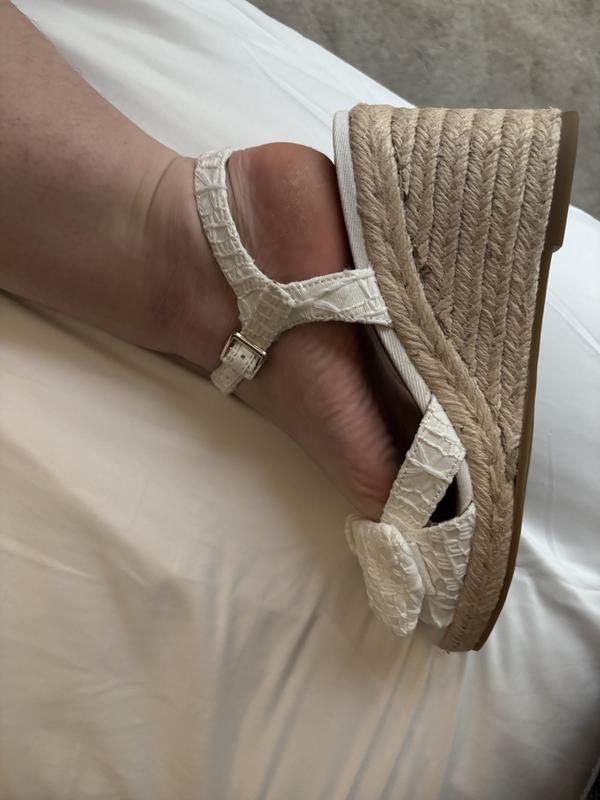 Looking cute has never felt better in these flirty wedge espadrille sandals with superior cushioning. Designed with canvas, fabric, or faux-leather upper, an open round toe, adjustable buckle, feminine bow detail, and jute-wrapped espadrille wedge. Trusted Soft System® comfort technology for unmatched cushion, support, and flexibility in every pair. Shock absorption with pressure distribution and superior cushioning for an effortless feel. Traction sole for extra stability. Just Right Height 3-inch wedge heel.
