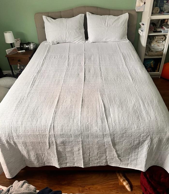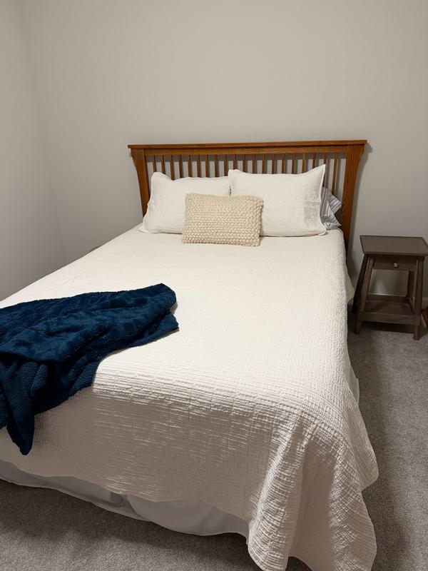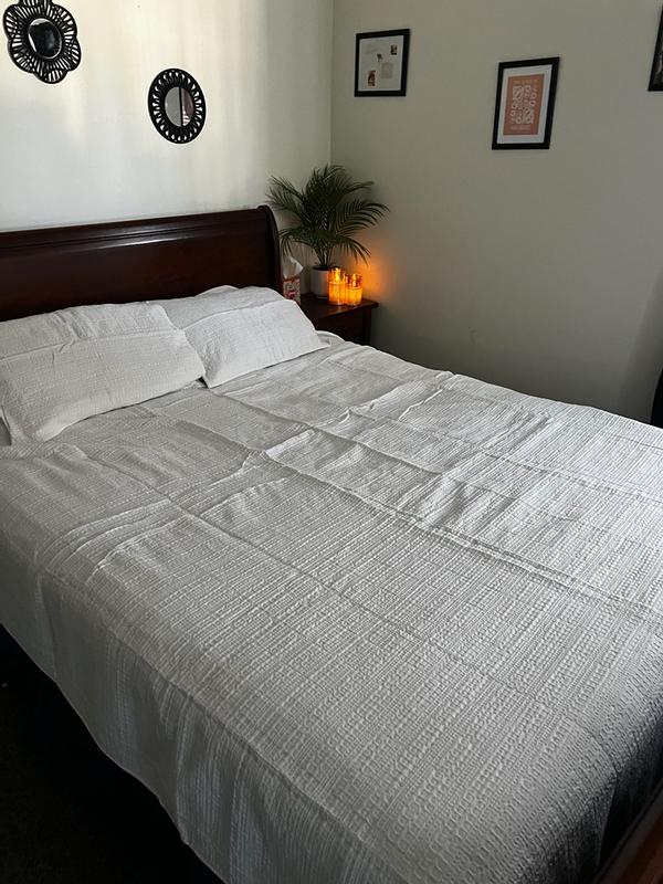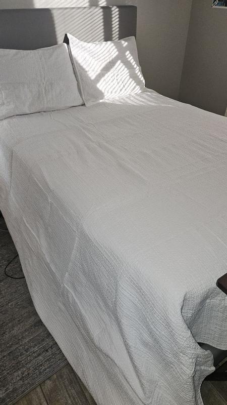 I really enjoy this quilt set, especially the texture and weight. It’s comfortable, breathable, and versatile across seasons. The waffle texture is a huge plus because it’s not fuzzy, so it doesn’t shed fibers or irritate skin. It works well year-round...warm enough for winter, but light enough for summer. It's well made and has held up nicely through washing. It fits the bed properly and doesn’t shift or slide off during the night. While the quality is good, the price feels a bit high for what it is. This is best for anyone who dislikes fuzzy or shedding blankets or people looking for a breathable, textured quilt that works in multiple seasons. I would repurchase, but only if it were on sale, as I wouldn’t pay full retail price despite enjoying the product.