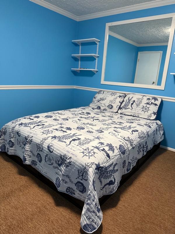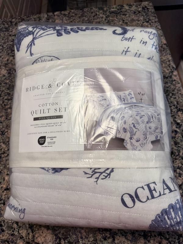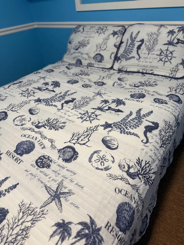 Cotton Stitched Reversible Coastal Quilt and Sham Set