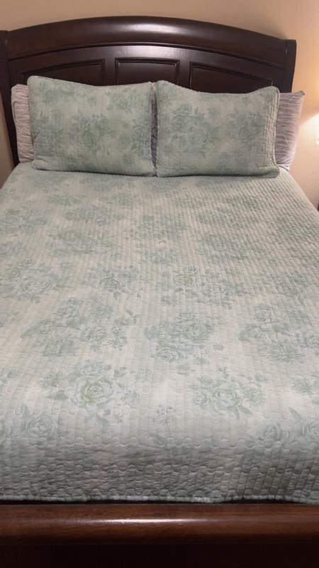 Cotton Stitched Reversible Floral 3 Piece Scalloped Quilt and Sham Set