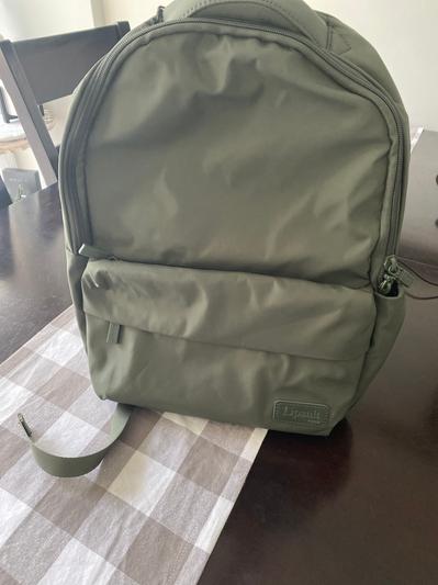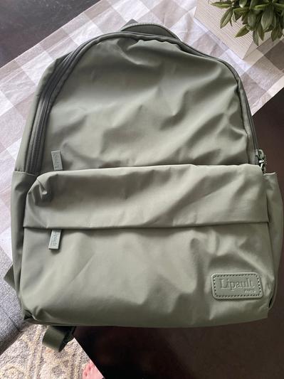 I’m really enjoying this backpack. I love the rich olive green color. It is lightweight so doesn’t feel too heavy when carrying it around. There are several different pockets so that you can fit many different items. The straps are slightly padded which makes them very comfortable, and you can easily wipe it down.