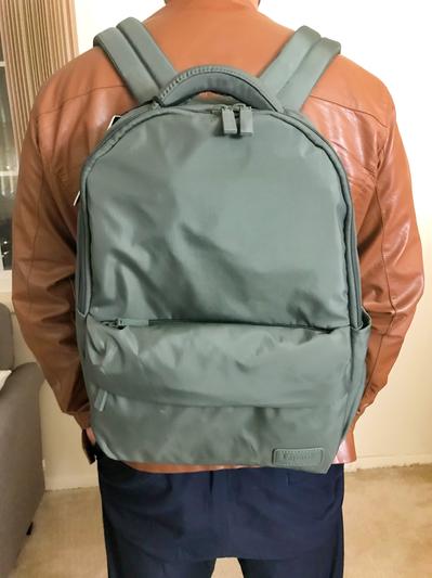 This backpack is a great bag for travel. It is light and compact, but sturdy. This bag is not for carrying a ton of things, as it is a little on the smaller side, but can easily hold a computer, documents, wallet, snacks. I received it in a dark olive green color, and love it! The material feels like it will be easy to wipe down and keep clean, unlike a canvas bag. I would recommend it if you are looking for something light and professional for travel.
