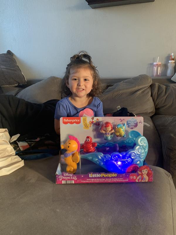 Little People Disney Princess Ariel and Flounder Toddler Toys, Carriage with Music and Lights