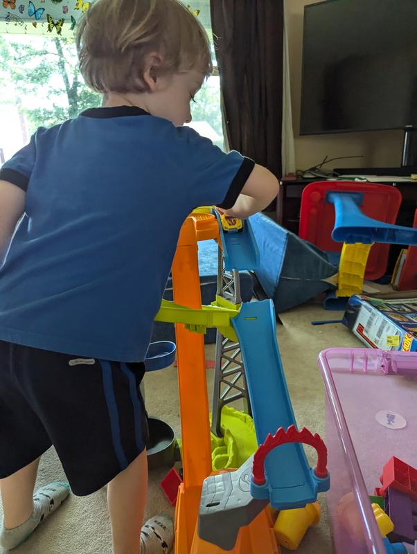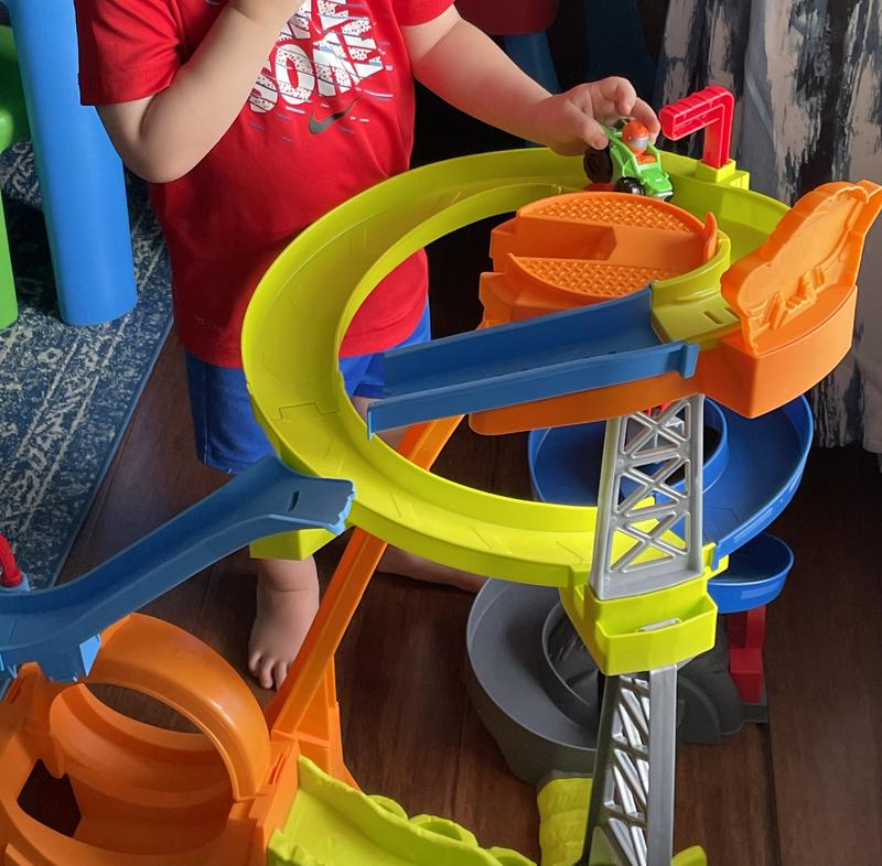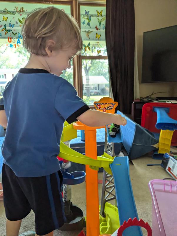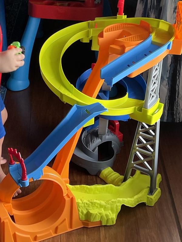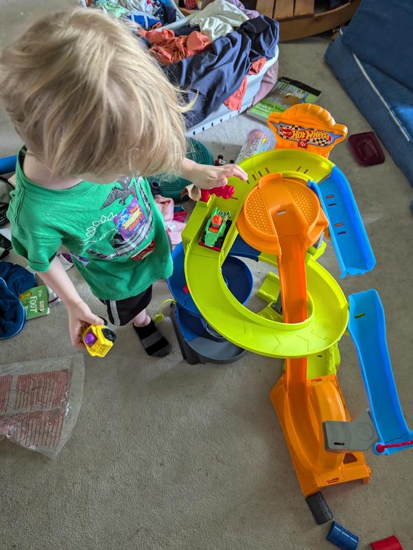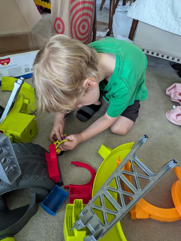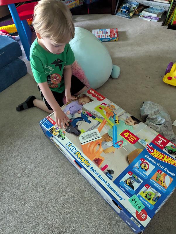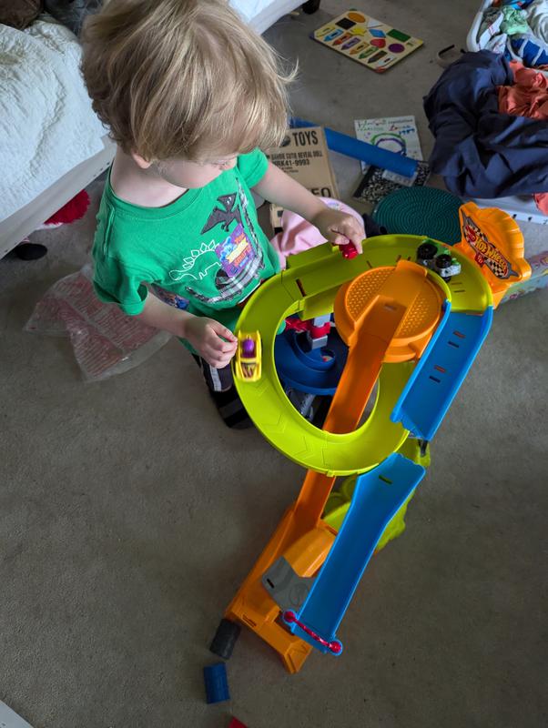 This Little People Hot Wheels Spiral Stunt Speedway is amazing! The cars go quickly down the spiral tracks and the stunt track is a fun addition! My toddler has so much fun playing and sending each car down the tracks. There are endless options and this keeps him entertained for hours. Assembly took a little longer than I expected but the tracks are labeled and the directions are clear, they even included a QR code for assembly! My little man will be playing with this for years to come! Highly recommended!