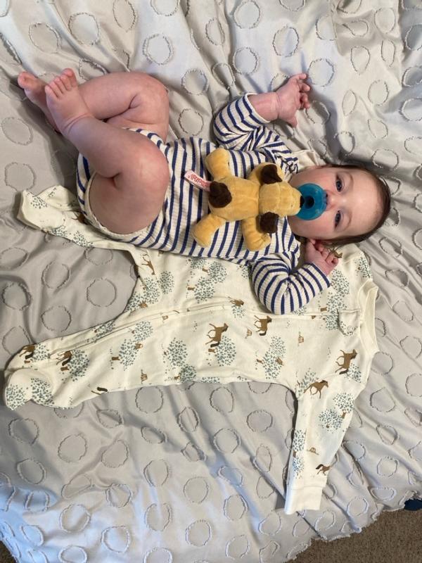 The fabric is soft, the 2 way zipper makes for easy diaper changes, and the footies keep those tiny toes warm!