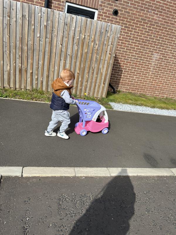 I bought this for my 16 month old granddaughter and it was perfect. She absolutely loves pushing it around and putting her babies in the car. So glad I made this purchase