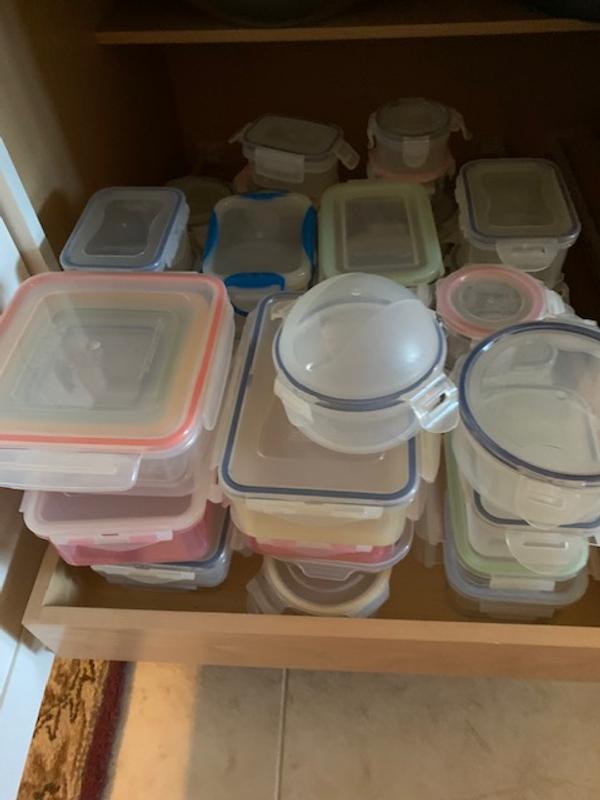 Ideal for snacks, dry ingredients, or even leftovers, this set of square containers in five convenient sizes is perfect for getting cupboards organized or for bringing extra ingredients or side dishes to picnics or barbeques. Lock & Lock's patented 4-hinge locking system has been durability tested to last up to 3 million uses, and the enhanced silicone seal is 100% airtight to keep foods fresh longer and 100% leak-proof to prevent messy drips and sloppy spills. BPA-free construction provides a healthy, versatile, and convenient storage solution for the refrigerator, freezer, pantry, or anywhere your foods need to stay fresh and organized. Plus, the containers are dishwasher safe for quick and easy cleanup.