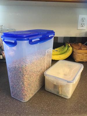 If you're looking for something affordable and for the perfect organizing container for cereal or even snacks this is the container you need! It holds a family sized box of cereal! And it's easy to fill as well as pour! Plus keeps your pantry organized and less bulky ! I highly recommend these!
