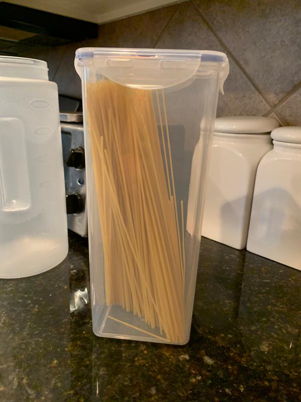 I was looking for the container where I can keep my long pasta. This is perfect. I like the snap in lid which assure everything is completely locked. I have couple of the snap in containers from a different brand. This one appears to be good quality. I will be getting different sizes.