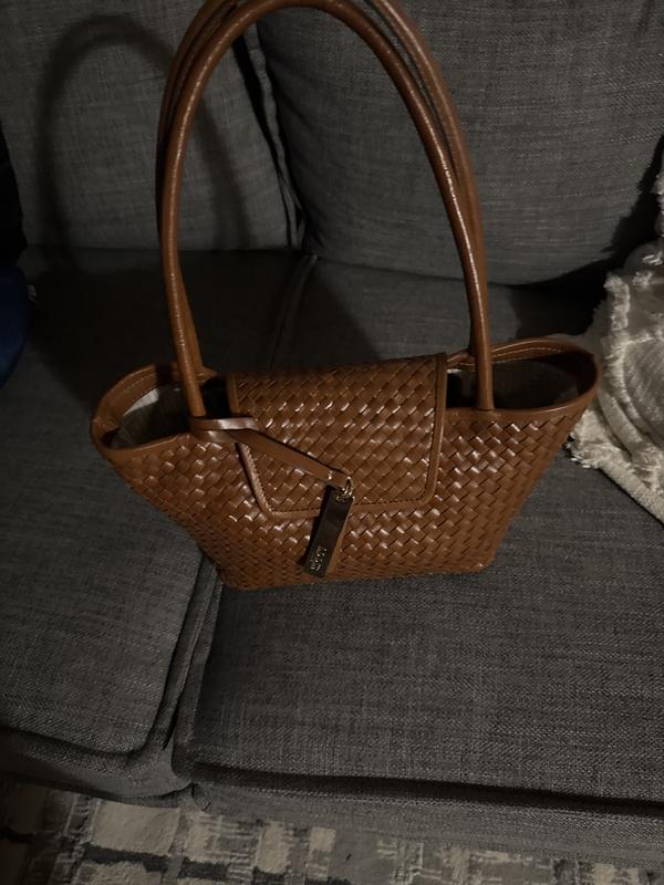 Web ID: 23541889The Vega satchel is a woven leather with front flap magnetic snap closure.