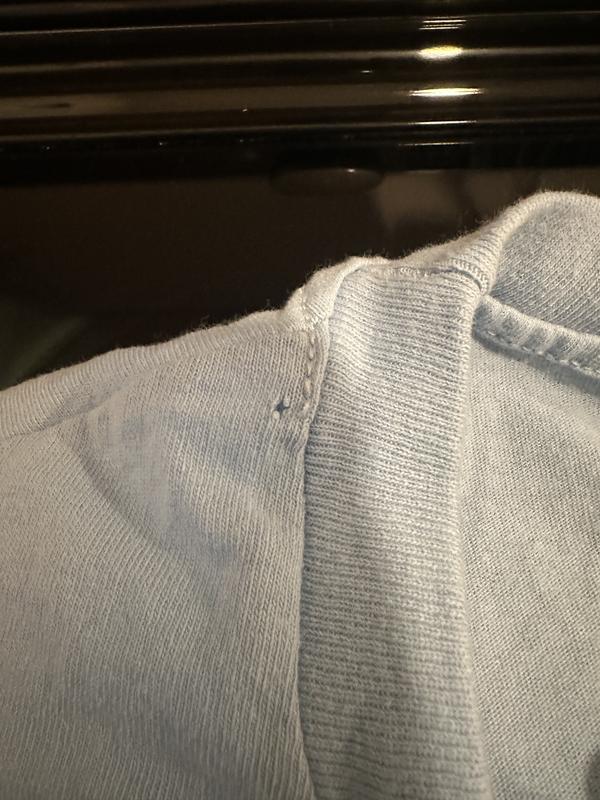 These are poor quality Hanes t-shirts. They are stiff and scratchy. One came with a small hole in it and the other has the decal on crooked but I need them for my grandsons birthday party and don’t have enough time to return and get something else.