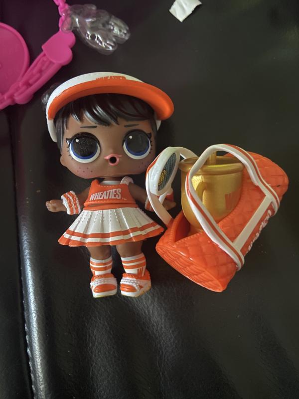 We got the Lucky Charms LOL, her name is Lucky Cutie and she is SO cute. She has bright orange hair with glitter and is everything rainbows. She has a super cute rainbow purse, rainbow earrings and rainbow headband. She also comes with her water cup. My 7 year old daughter says that she really likes that she is cereal themed, however if we had gotten a Wheaties one I don’t know that she would have felt the same since she’s not familiar with that cereal at all lol.