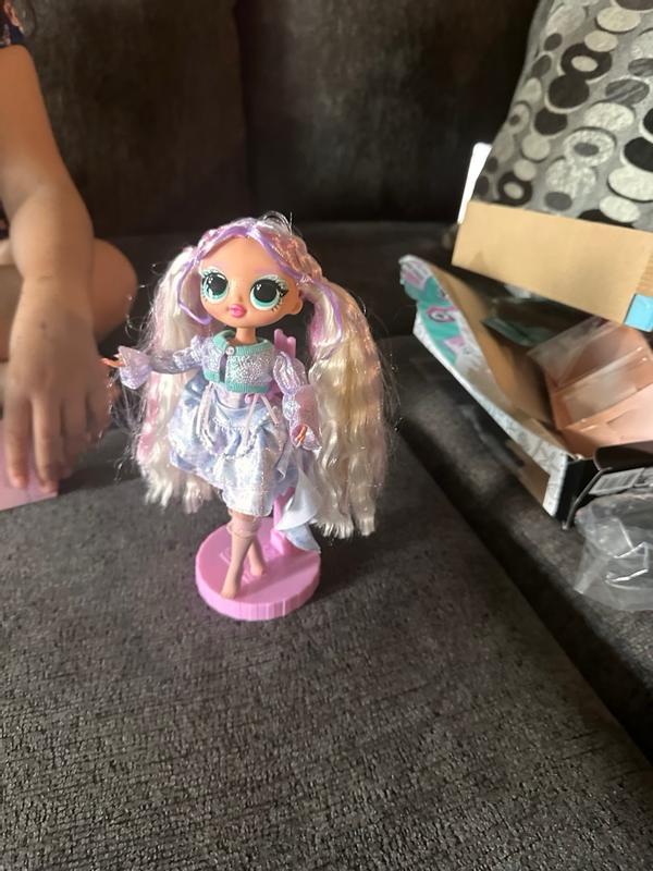 My daughter loves all things LOL so she was super excited to get her first OMG doll on our vacation! My daughter liked that you can bend her arms and hands. She also loved her outfit and came up with a backstory for her! That she was in a dance competition and won and the prizes were the purse and earrings. I foresee lots of imaginative play with her! She likes that there is a stand for her to be displayed when not playing. Finally, her hair is super soft and easy to put in different styles.