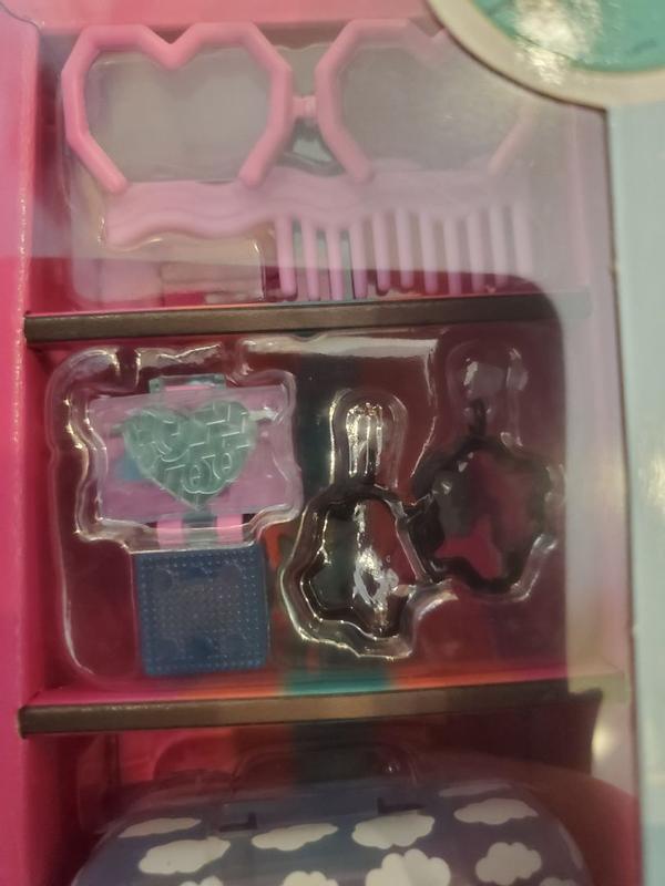 This is such a cute little doll! I adore the giant eyes. Her accessories bring me back to my childhood, I mean.. a Kaboodle, cmon!!!! So stinking cute. The extra surprise accessories are fun too. If you have a child that loves dolls and unwrapping trinkets, this is the doll for you!